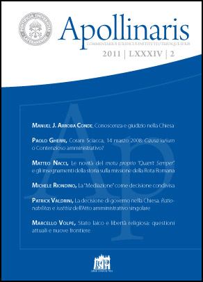 Apollinaris è dal 1928 lo strumento attraverso cui l’Institutum Utriusque Iuris della Pontificia Università Lateranense esprime e condivide la propria riflessione sul fenomeno giuridico, tanto nella sua espressione canonica che civile, con attenzione privilegiata alla comparazione ed alle dinamiche inter ordinamentali, sia storiche che contemporanee.
